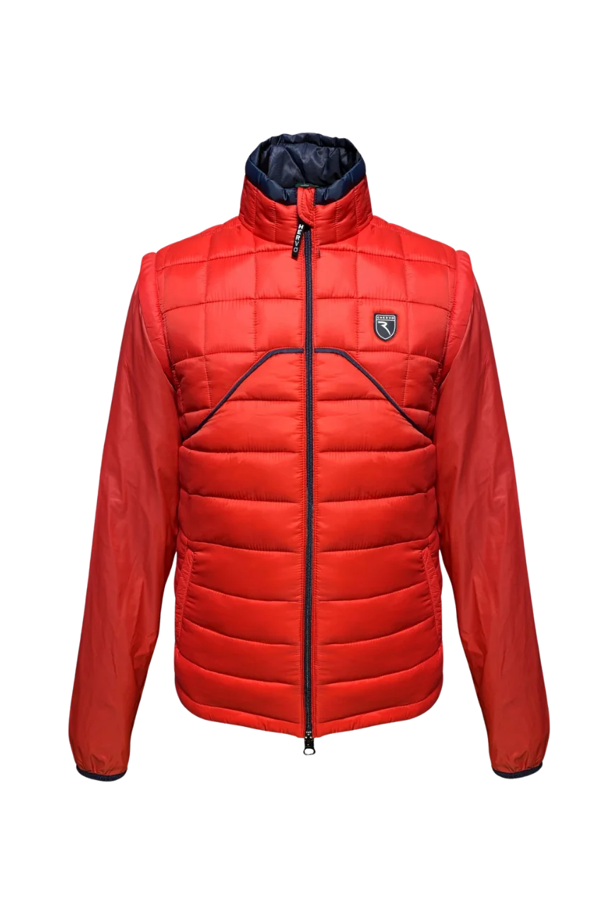 Áo khoác Golf nam Chervo Maffezzoli 63154 – Red 850 với thiết kế 2 in 1, bạn có thể thay đổi kiểu dáng linh hoạt từ áo khoác thành áo gile nhờ phần tay áo có thể tháo rời.