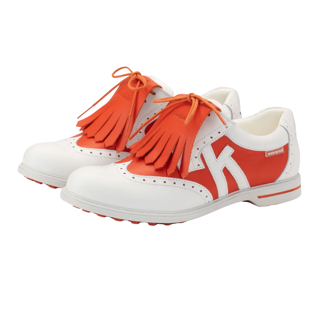 Giày Golf nữ Kankura Florida 02 | FL002-07 – White/Mango được thiết kế với kiểu dáng thời trang, đạt tiêu chuẩn chất lượng với khả năng chống nước vượt trội.