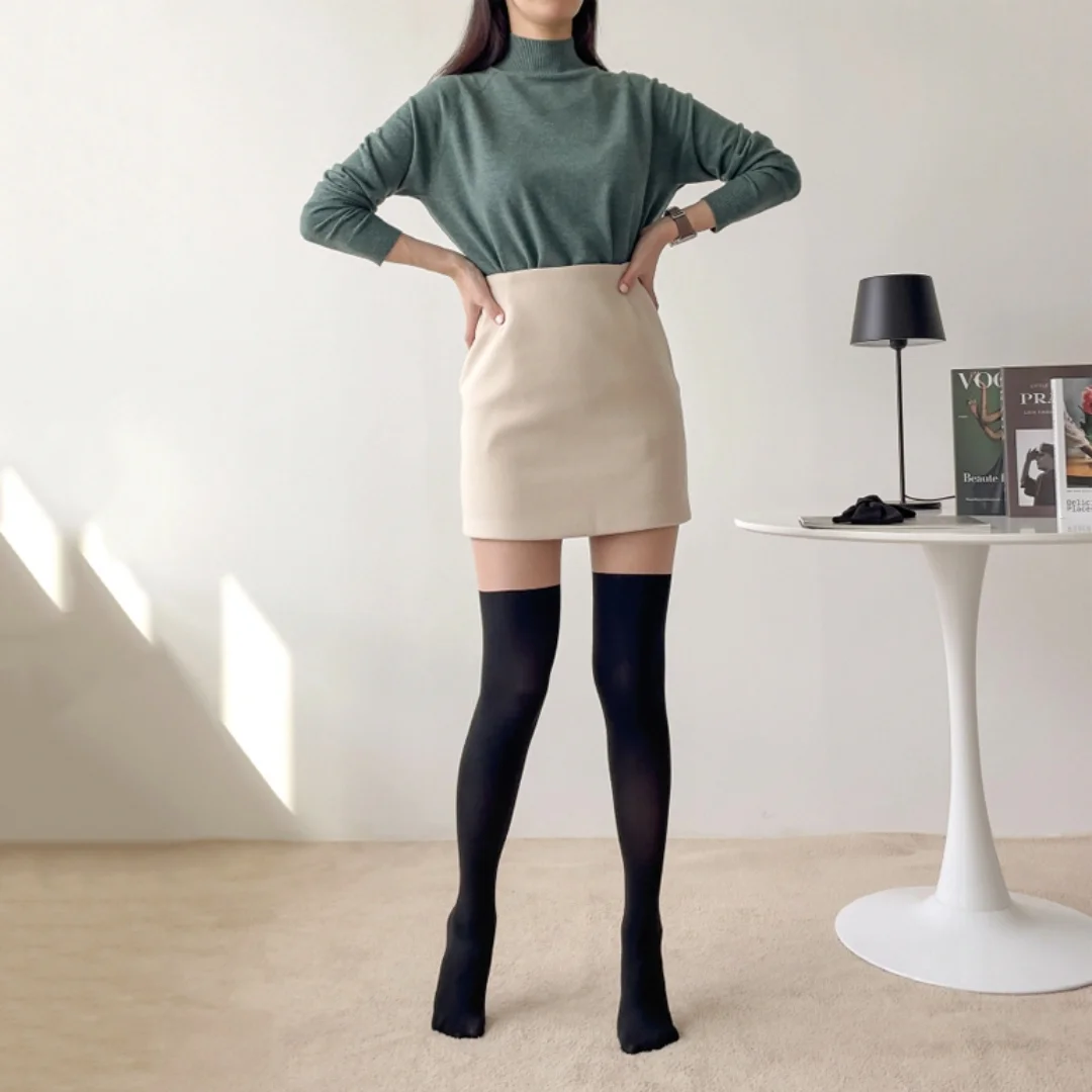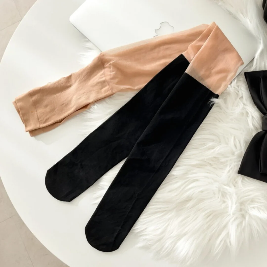- Thiết kế thông minh: Phần trên mỏng, nhẹ tạo hiệu ứng như một chiếc quần tất “tàng hình” ôm sát chân. Phần dưới là tất dài qua gối với chất vải dày dặn, giúp đôi chân trông thon gọn và thon thả hơn.