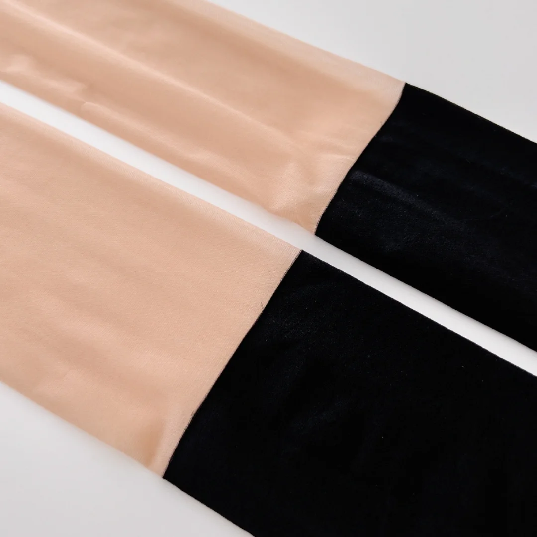 - Chất liệu cao cấp: Phần trên (màu da): 15 Denier, mỏng và nhẹ. Phần tất dưới (trắng/đen): 70 denier, dày dặn và chắc chắn.