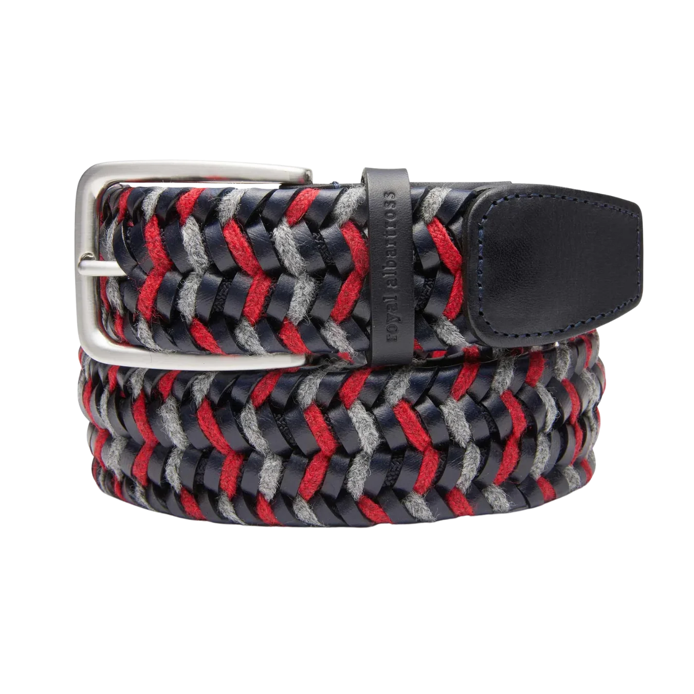 Thắt lưng Golf nam Albartross Regent – Navy Red có hoa văn dệt màu xanh navy, đỏ và xám, sự kết hợp tương phản giữa len, da và vải Rayon mang lại phong cách thời trang cho sân Golf và hơn thế nữa.